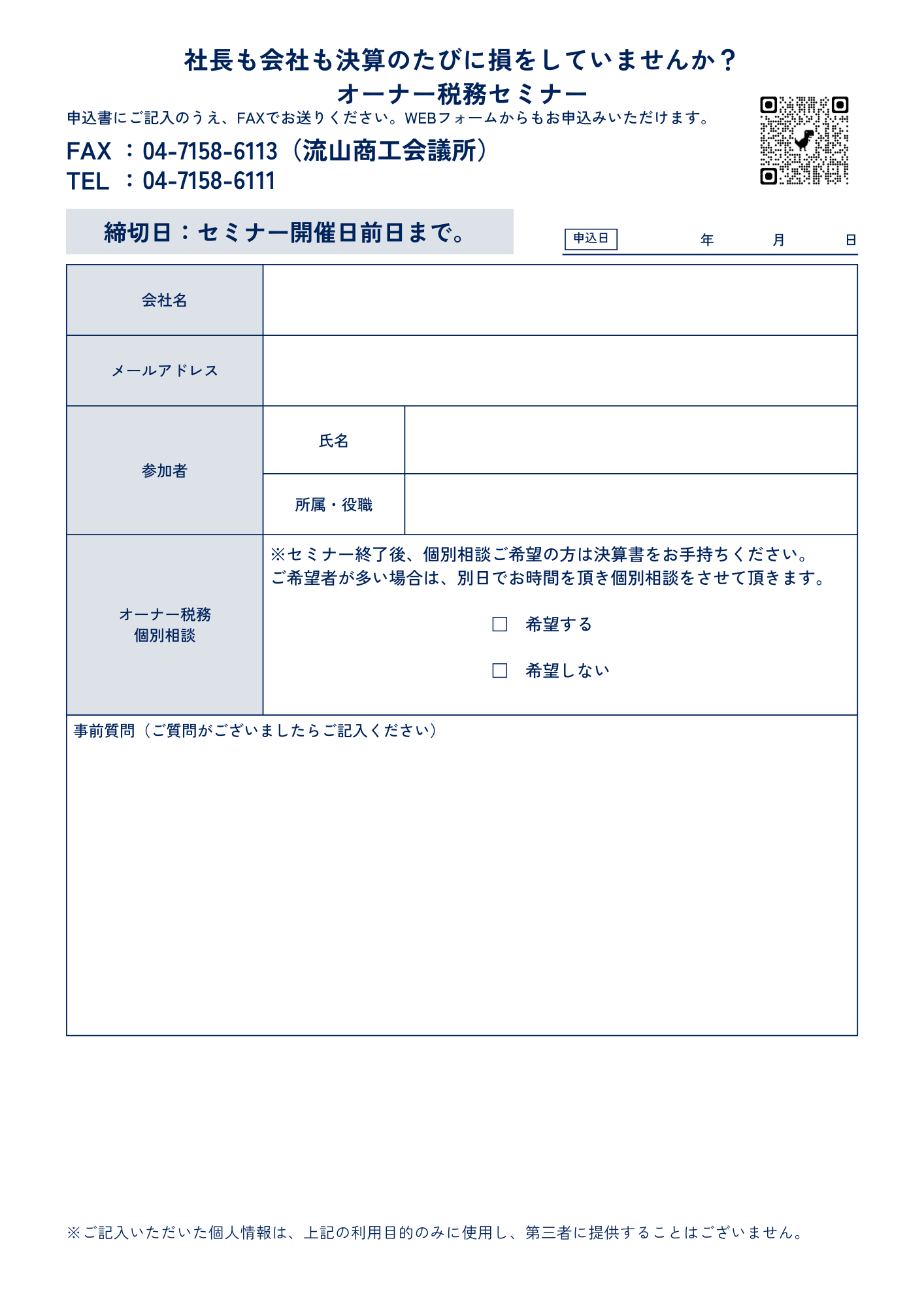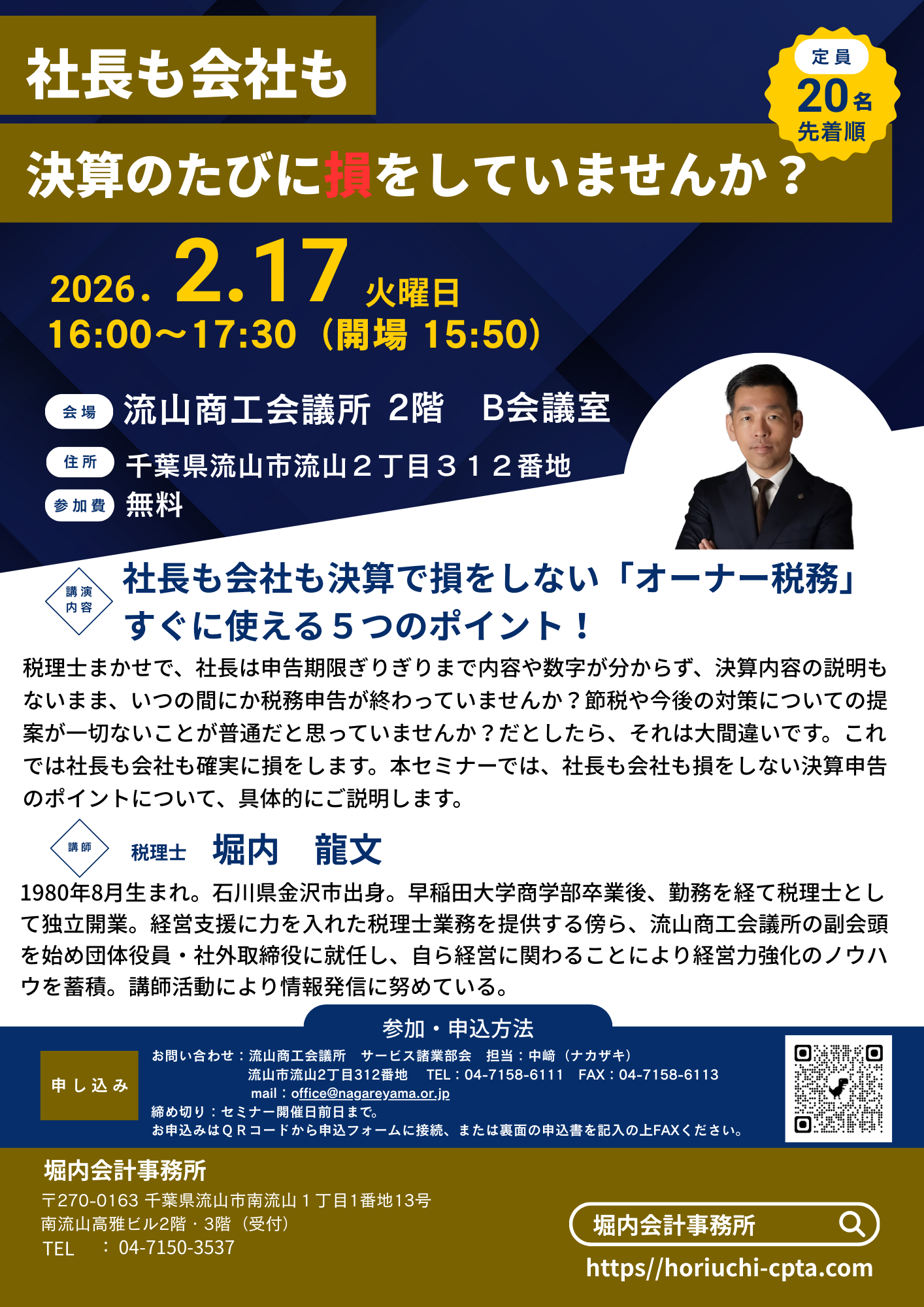主 催:流山商工会議所サービス諸業部会 共 催:堀内会計事務所